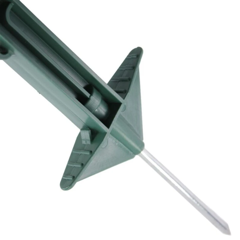 Ein eingespritzter verzinkter Stahlnagel 8mm sorgt für festen Halt der Weidezaunpfähle auch bei seichten Böden. Der aus PP-Copo Kunstoff hergestellte und glasfaserverstärkte Weidezaunpfahl ist UV-stabilisiert und dadurch unempfindlich gegenüber lichtinduziertem spröde oder brüchig werden. Die Weidezaunfähle haben 9 Bandösen für Weidezaunbänder in zwei verschiedenen Breiten und 5 Seilösen für Weidezaunseil, Weidezaundraht, und Weidezaunlitzen.