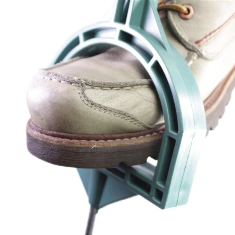 Mit dem Steigbügel lässt sich der Weidezaunpfahl einfach und trittsicher an Ihrem Weidezaun eintreten. Ein eingespritzter verzinkter 8mm Stahlnagel am Fußende der Weidezaunpfähle und dessen verwindungsfreihes Profil sorgen für festen Stand. Die beiden Trittstege links und rechts über dem Stahlnagel verteilen die auf den Weidezaunpfahl wirkenden Kräfte in weichen und harten Böden. Die insgesamt 10 Ösen entlang der Weidezaunpfähle mit Steigbügeltritt verteilen sich auf 4 schmale Weidezaunband-Ösen unten und 2 breitere Weidezaunband-Ösen und 4 Ösen für Weidezaunseil jeweils oben am Weidezaunpfahl. Schließlich macht die grüne Farbe die Steigbügelpfähle zum angenehm natürlichen Blickfang an Ihrem Weidezaun.
