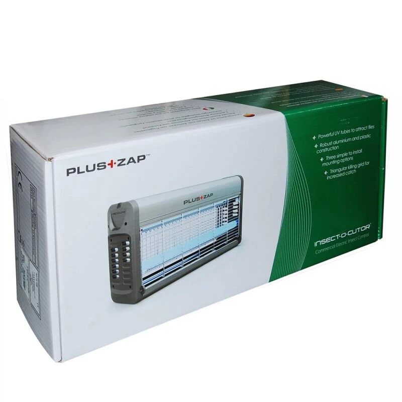 Der Insektenvernichter »Eurokill 16 30 40 80« ist eine UV Licht Falle mit 16-80 Watt Leistung. Der Eurokill bietet modernes Design, versetzt angeordnete UV-Röhren für eine effizientere Lichtausgabe, innovatives Stromgitter für einen größeren Fangbereich. Außerdem punktet der Insektenvernichter mit leichter Wartung, tiefer Auffangschale mit automatischer Stromunterbrechung beim Entfernen der Schale, einfacher Röhrenwechsel und flexibler Wand-, Tisch oder Deckenmontage. Alle Eurokill Typen von 16, 30, 40 bis 80 Watt sind unabhängig getestet und zertifiziert nach RoHS und allen relevanten europäischen Sicherheitsstandards. Fliegen und andere Insekten werden von dem ultravioletten UV Licht des Eurokill Gerätes angezogen. Durch die im Fliegenvernichter befindlichen Hochspannungsdrähte werden Fliegen und andere Insekten ohne chemische und giftige Substanzen elektrisch getötet. Die untenliegende Auffangschale nimmt die getöteten Tiere auf, so dass die Umgebung nicht verschmutzt wird. Die Fliegenvernichter von Eurokill haben sowohl bei Tageslicht als auch bei künstlicher Beleuchtung eine optimale Wirkung und sind für den Stallbedarf und im Haus zu gebrauchen.