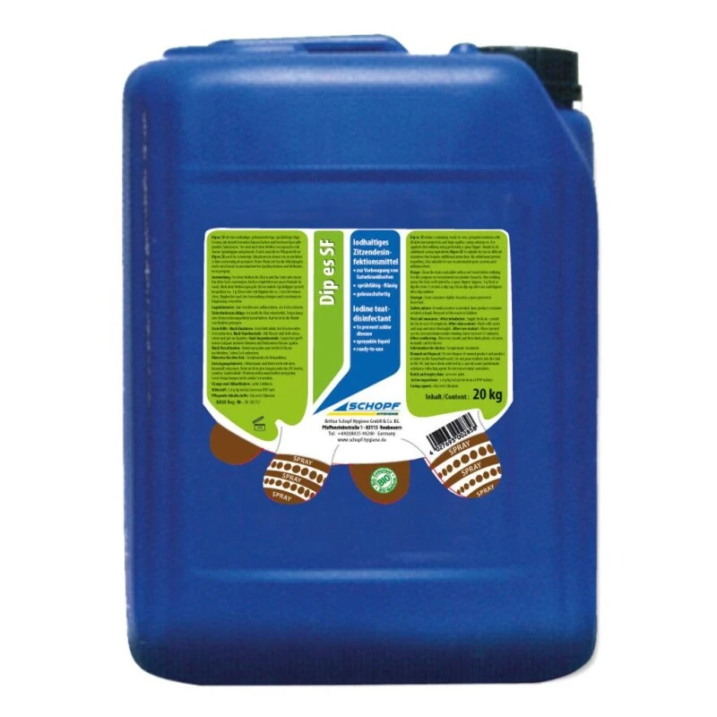 Die Euter Pflege »Dip Es« für Kuh, Schaf, Alpaka (20kg) pflegt und schützt die Zitze und das Euter. Ökonomisch und sicher im Dip- und Sprühverfahren. Anwendung direkt nach dem Melken. »Dip Es« verhindert Keimübertragungen und rissige Zitzenhaut und macht die Zitze weich und geschmeidig.