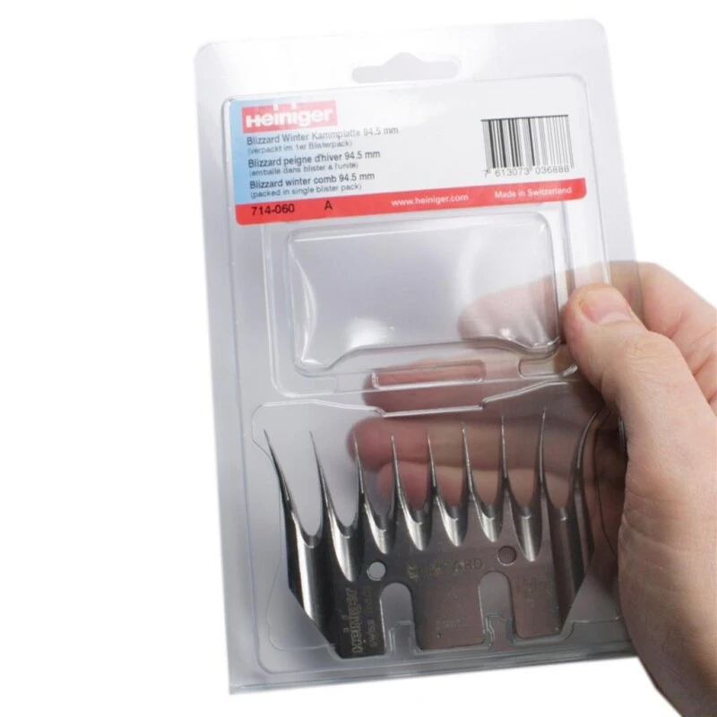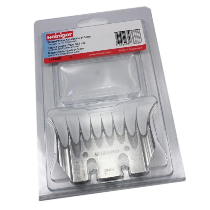 Heiniger Blizzard Winter 714-060 Scherkamm 94mm. Heiniger Schermesser für die professionelle Winterschur. Universal Winterkamm für alle Schafrassen. Dieser Kamm ist mit der neusten LG2 Technologie ausgestattet. Aus Spezialstahl gefertigte Schermesser mit langer Haltbarkeit. Mehrmaliges Nachschleifen ist mit den Schermessern möglich.