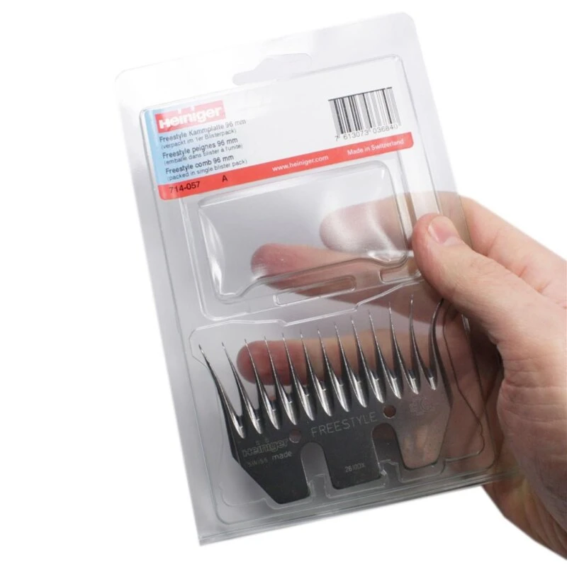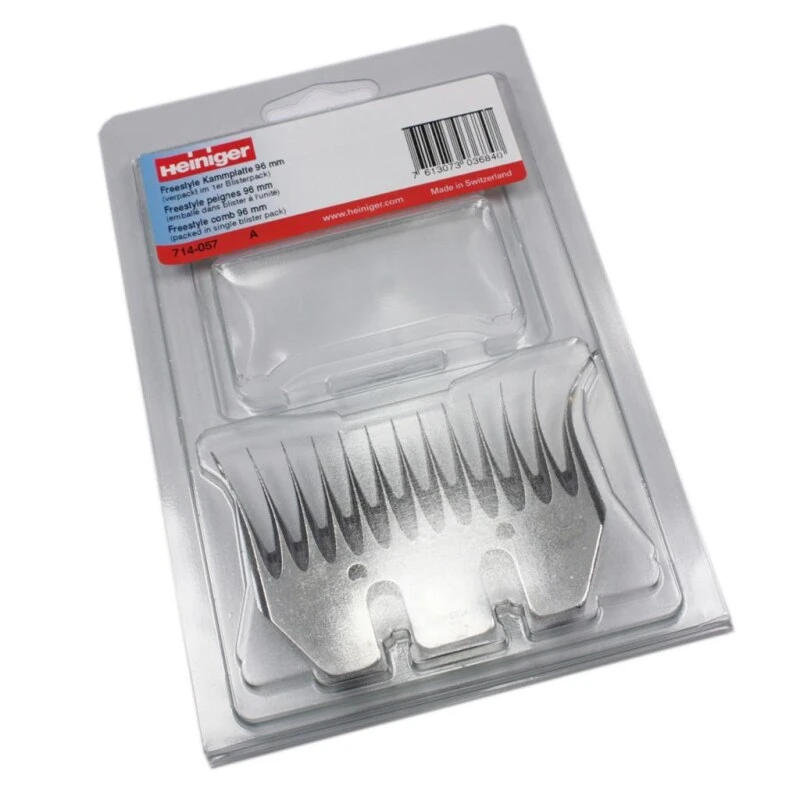 Heiniger Freestyle 714-057 Schermesser 96mm. Für die professionelle Schur von feiner Wolle hergestellte Heiniger Schermesser. Schert mittelmässige bis schlechte Merino Wolle schnell und sauber. Gefertigte Schermesser aus Spezialstahl für lange Haltbarkeit. Nachschleifen ist mit den Schermessern mehrmals möglich.