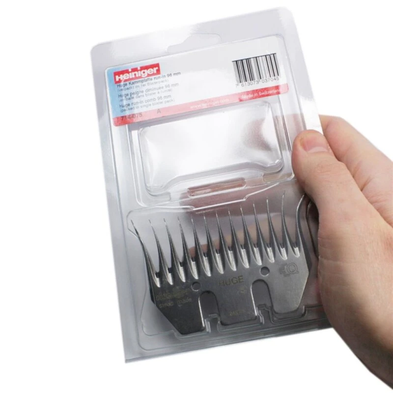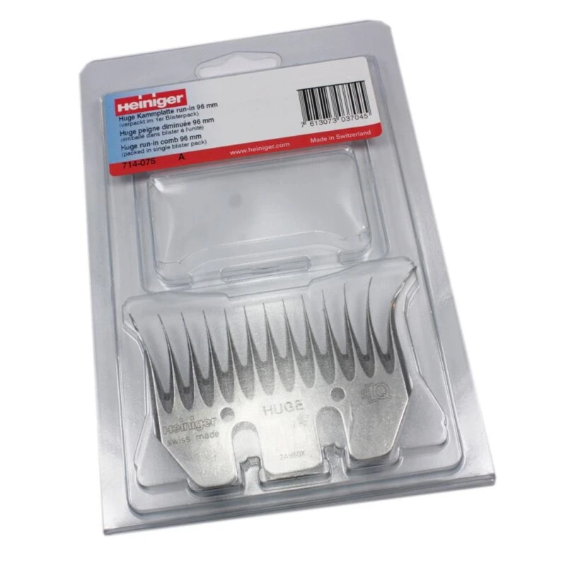 Heiniger Huge 714-075 Schermesser run-in 96mm. Für die professionelle feine Schur hergestellte Heiniger Schermesser. Erreicht eine hohe Schurleistung bei allen feinwoll Arten. Gefertigte Schermesser aus Spezialstahl für lange Haltbarkeit. Nachschleifen ist mit den Schermessern mehrmals möglich.