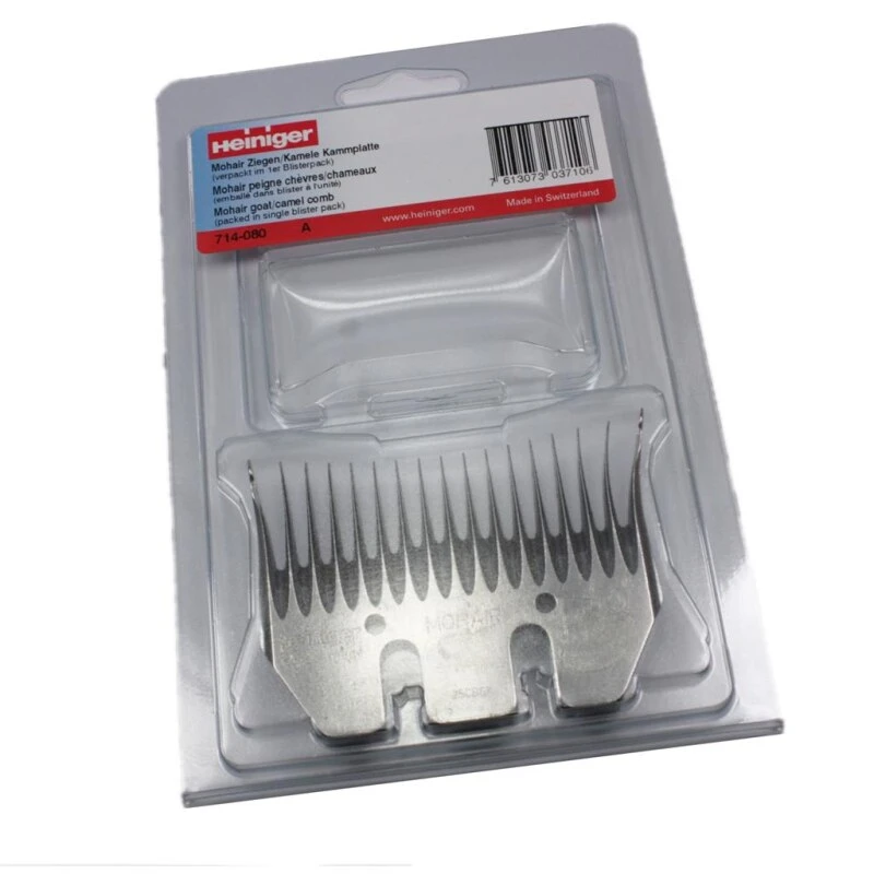 Heiniger Mohair 714-080 Schermesser Ziege/Kamel. Heiniger Schermesser für die professionelle Ziegenschur. Mohair Ziegenkamm. Speziell zur Schur von Mohair Ziegen entwickelt. Aus Spezialstahl gefertigte Schermesser mit langer Haltbarkeit. Mehrmaliges Nachschleifen ist mit den Schermessern möglich.