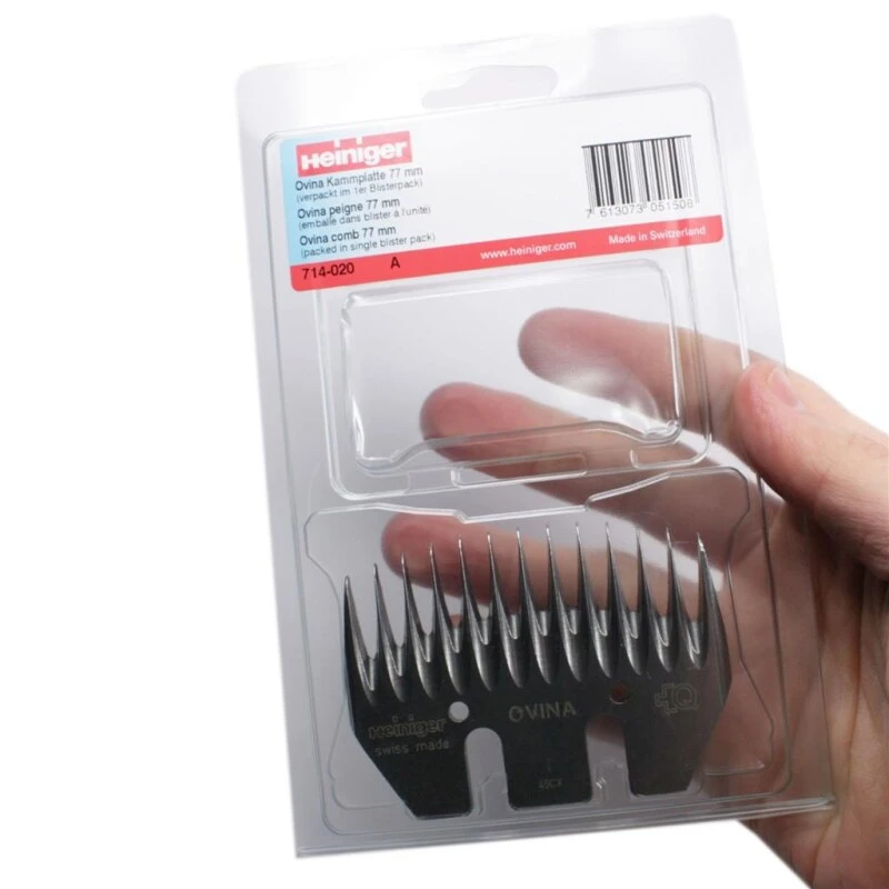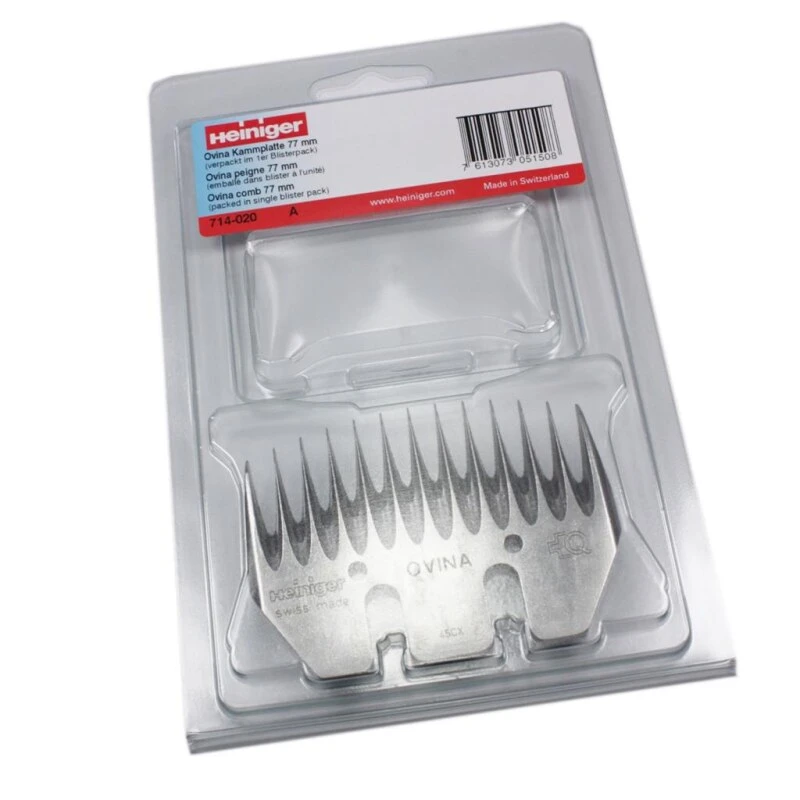 Heiniger Ovina 714-020 Schermesser 77mm. Heiniger Schermesser für die professionelle Schur. Aus Spezialstahl gefertigte Schermesser mit langer Haltbarkeit. Mehrmaliges Nachschleifen ist mit den Schermessern möglich.