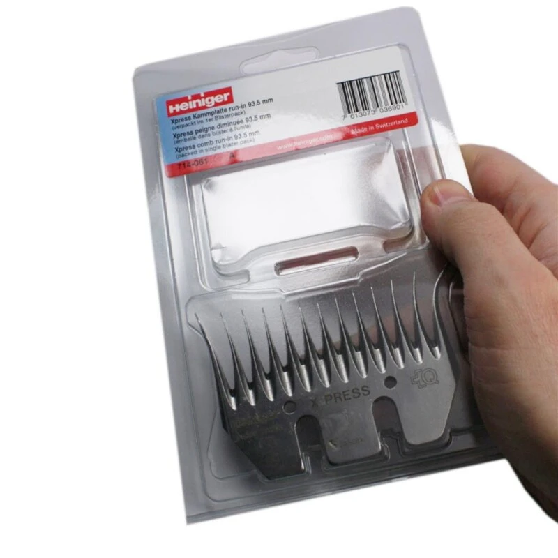 Heiniger Xpress 714-061 Schermesser 93,5mm. Für die professionelle Schur feiner Wolle hergestellte Heiniger Schermesser. Ermöglicht eine absolut saubere Schur, auch in dichtester Feinwolle. Gefertigte Schermesser aus Spezialstahl für lange Haltbarkeit. Nachschleifen ist mit den Schermessern mehrmals möglich.