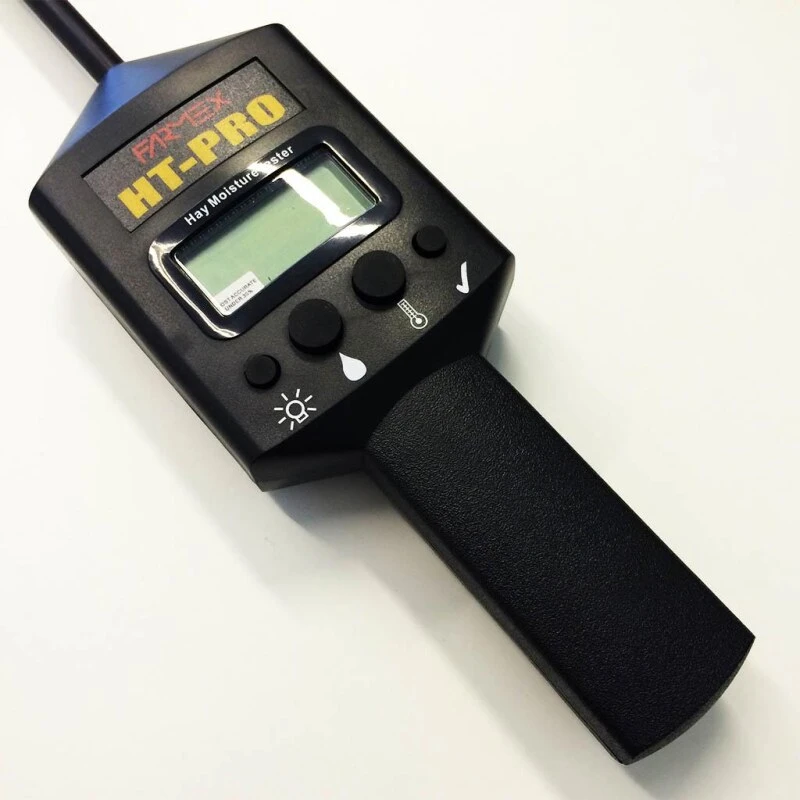 Mit dem Heumessgerät / Heufeuchtigkeitsmesser „Hay Master“ (1x9V) messen Sie Feuchtigkeit von 8% bis 45% und Temperatur von 0° bis 105° Celsius unkompliziert in Heu- und Strohballen. Das Heumessgerät wird mit einem 9v Block betrieben und ist mit 339g mobil und leicht zu handhaben. Das Gerät kann für kleine und große Quarderballen sowie Rundballen mit verschiedener Ballendichte verwendet werden. Der Messstab ist 50cm lang, angespitzt und kommt mit seinen 7mm Durchmesser gut in jeden Ballen. Der Hay Master ist durch ein einfaches Clip-Modul bei Bedarf in weniger als 20 Sekunden kalibriert.