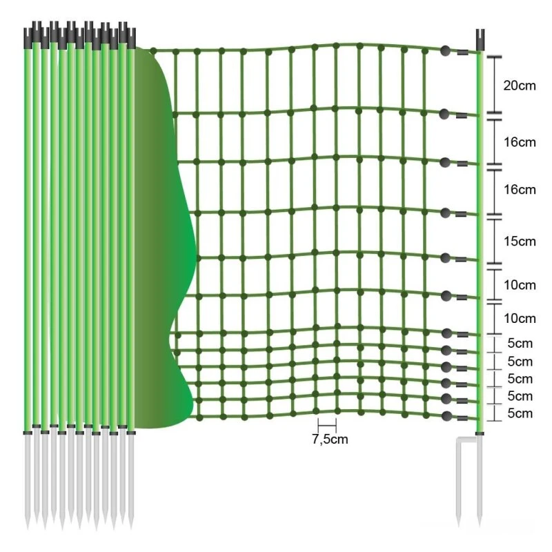 Ein Durchhängen bei Elektronetz Elektrozäunen kann die Hütesicherheit des Weidezauns beeinträchtigen. Wir empfehlen dann mit zusätzlichen Weidezaunpfählen (Ersatzpfählen) das Elektronetz entsprechend zu stützen. Die Ersatzpfähle eigenen sich auch hervorragend um ein Weidetor in Ihr Elektronetz zu integrieren. Fädeln Sie hierzu einfach einen zusätzlichen Weidepfahl im gewünschten Abstand zum Ende / Anfang Ihres Elektronetzes ein, hängen Sie die Litzen in die vorhandenen Pfahlklammern, schon haben Sie ein Weidetor Ihrer Wahl.