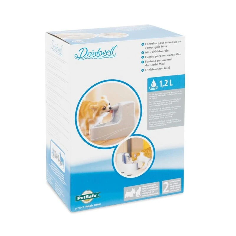 Der Katzenbrunnen »DrinkWell« Trinkbrunnen hat ein Fassungsvermögen von 1,2l. Dieser platzsparende Haustierbrunnen eignet sich am besten für Katzen und kleine Hunde. Dank des frei fließenden mit Aktivkohle gefilterten Wasser bleiben die Tiere gesund und sind vor Austrocknung geschützt.
