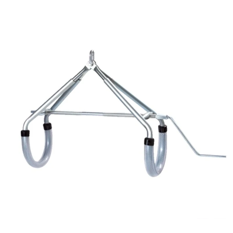 Die Kuh-Hebevorrichtung »Vink« zum Aufrichten von einer Kuh bietet eine stabile Ausführung aus verzinktem Metall. Zum Aufrichten einer Kuh nach schwieriger Geburt. Gummi überzogene Greifklammern auf die jeweilige Größe des Tieres einstellbar. Der auf das Gelenk fixierte Ringer erlaubt das Aufrichten der Kuh mit Hilfe eines Flaschenzuges oder anderer geeigneter Geräte.