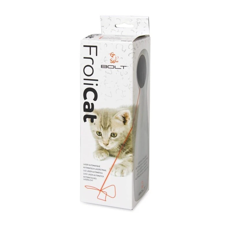 Das Katzenspielzeug »Frolicat Bolt« Laserspielzeug für Katzen ist ein cleveres interaktives Laserspielzeug, das stundenlangen Spielspaß für Sie und Ihr Haustier bietet. Halten Sie BOLT in der Hand oder stellen Sie das Spielzeug im automatischen Modus auf eine glatte Oberfläche, wo es willkürliche Lasermuster wirft. Schalten Sie es ein und sehen Sie zu, wie Katze oder Hund versuchen, die Lasermuster zu erhaschen, die flink durch den Raum flitzen. Ein verstellbarer Spiegel wirft den Laserstrahl über verschiedene Oberflächen.