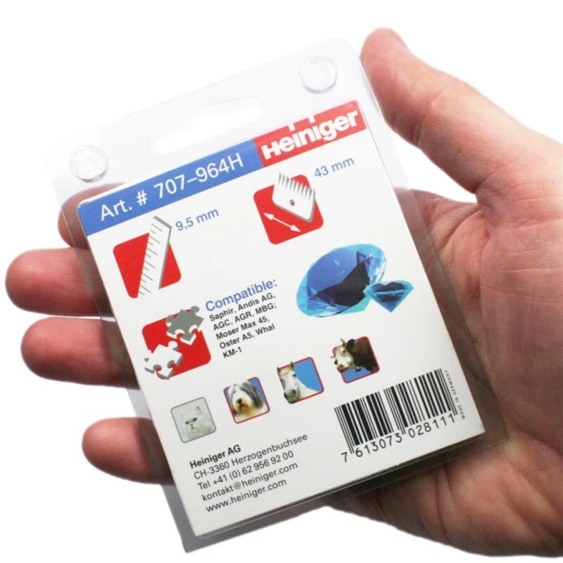 Die Scherköpfe »Heiniger Saphir 4« mit einer Schnitthöhe von 9,5mm sind für Hunde, Pferde und Kühe geeignet