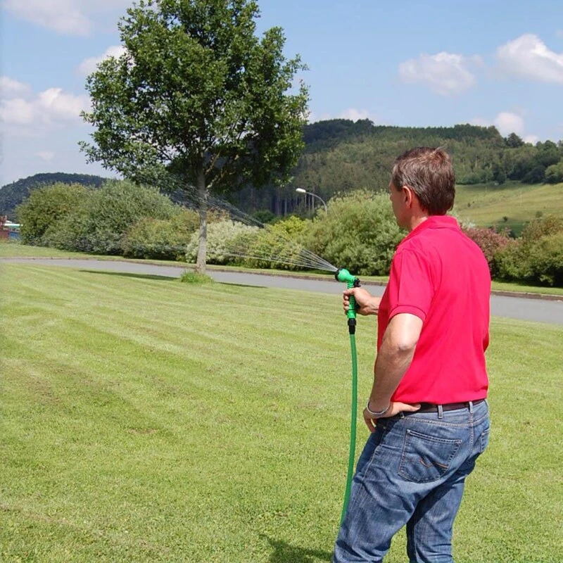 Der Wasserschlauch »Flexischlauch« inkl. Brause ist bis zu 30m lang und nur 10m kurz entleert. Die beiliegende Sprühpistole / Brause kann Gardena / Kärcher kompatibel angeschlossen werden. Der Wasserschlauch hat einen 1/2″ Anschluss und ist somit für die meisten Garten-Wasseranschlüsse nutzbar. Die Multifunktionsbrause hat 7 verschieden einstellbare Funktionen. Der Flexischlauch ist ähnlich dem Flexi Wonder und Zauber Gartenschlauch ein dehnbarer Gartenschlauch: selbstentleerend, robust und langlebig. Platzsparend rollt sich der Flexi Gartenschlauch selber auf. Die spezielle Nylon-Materialzusammensetzung aus der Luftfahrttechnik verhindert verknicken und verdrehen und macht den »Flexischlauch« Wasserschlauch zu einem idealen Partner zur Bewässerung, Autowäsche, Gartenpflege, Fenster putzen und mehr.