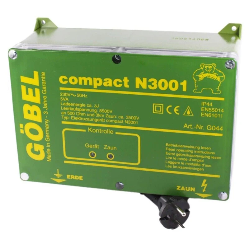 Das Weidezaungerät »compact N3001« (230 Volt, 2,00 Joule) ist für Ihren Weidezaun bis 20km geeignet. Das compact N3001 Weidezaungerät ist das richtige Gerät rund um Haus und Hof wenn höhere Leistung z. B. bei längeren und mehrdrähtigen Weidezäunen oder bei größeren Pferdekoppeln und großen Portionsweiden gefordert wird. Durch seine hohe Schlagstärke und die hohe Ausgangsspannung ist es bestens für den Betrieb an Schafnetzen und für schwierigere Bedingungen geeignet. Das Weidezaungerät compact N3001 ist sparsam und zuverlässig, einfach montiert und bewuchsvernichtend. Dazu hat das Weidegerät eine einfache LED Zaun- und Gerätekontrolle. Sein kompetitiver Preis und die hohe Schlagstärke machen es zu einer besonders wirtschaftlich Alternative am Weidezaun. Die Weidezaungerät Lieferung erfolg ohne Zaun- und Erdkabel – als Zuleitung empfehlen wir unser Untergrundkabel mit der Art. Nr. 10520 zu verwenden: maximale Leistung im Weidezaungerät benötigt auch maximale Erdungsverbindung.