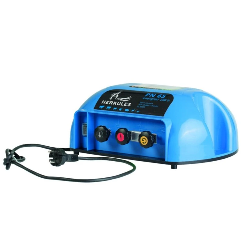 Das schlagstarke Weidezaungerät »Herkules PB7« ist sowohl für den 9 Volt- als auch für den 12 Volt-Betrieb gemacht. Im sehr robusten und schlagfesten Gehäuse befinden sich zahlreiche Anzeigen und Kontrollmöglichkeiten. Die LCD-Anzeige gibt Info zum Zustand des Zaunes und der Batterieladung. Über die Zaunschleife misst das Weidezaungerät den Zustand des Weidezauns und gibt Rückschluss über mögliche Verluste. So muss der Kreislauf nicht mehr ständig manuell überwacht werden. Über die Energiesparoption wird der Impuls im Nachtbetrieb von 1,4 Sekunden auf 1,8 Sekunden verlängert, sodass nachts 20% weniger Strom verbraucht werden. Mit der Energiesparfunktion folgen auf 10 starke Impulse je 100 flache Impulse, sodass lediglich für die Dauer der Tierberührung direkt auf 10 starke Impulse gewechselt wird. Als Warnung vor einem Spannungsabfall (ab 3.000 Volt) fängt die LED-Anzeige an zu blinken. So ist direkt zu erkennen, dass der Zaun kontrolliert werden sollte. Die LED-Anzeige zeigt „LO“ und blinkt zugleich wenn die Batterie schwach wird.